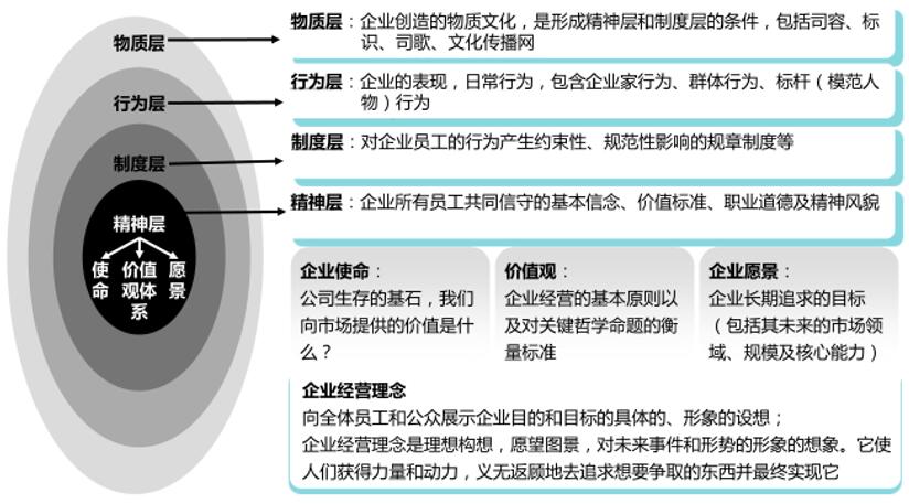 按照文化的四層次理論,完善物質(zhì)層、行為層的文化要素,形成文化基礎(chǔ)。