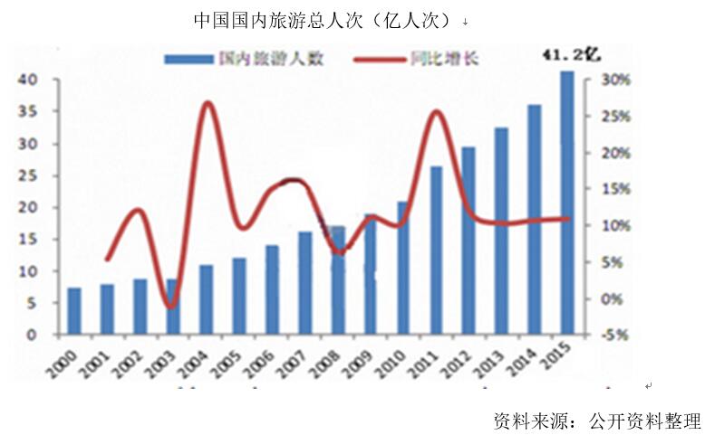 2015年全年接待國內(nèi)外旅游人數(shù)為41.2億人次,旅游總收入達(dá)到4.13萬億元,對GDP綜合貢獻(xiàn)達(dá)到10.1%,成為經(jīng)濟(jì)增長新引擎。另外實(shí)現(xiàn)了"十二五"時期旅游業(yè)發(fā)展的漂亮收官,并開啟了旅游發(fā)展的新時代。
