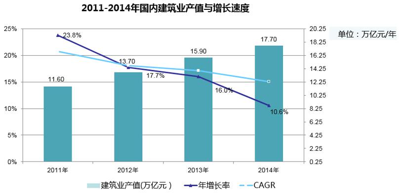 “十二五”期間,我國建筑產業(yè)發(fā)展迅速,到2015年產業(yè)年度總產值已達到20萬億元,當前行業(yè)具有如下特點: