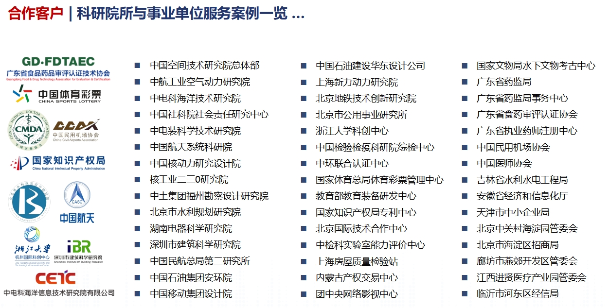 (1)在科研機(jī)構(gòu)方面,漢哲先后服務(wù)教育部裝備中心、中國(guó)檢科院、國(guó)家文物局水下考古中心、團(tuán)中央網(wǎng)絡(luò)影視中心、北京公用事業(yè)研究所、河南電力設(shè)計(jì)院、北京熱力設(shè)計(jì)院等一批不同類型的社會(huì)科研機(jī)構(gòu),同時(shí),先后為航天科技、中航工業(yè)、中國(guó)電科等軍工集團(tuán)下屬的科研院所開展咨詢服務(wù),在科研院所改制、民品產(chǎn)業(yè)發(fā)展、組織再造、人力資源體系設(shè)計(jì)、崗位競(jìng)聘等方面積累了豐富的經(jīng)驗(yàn);