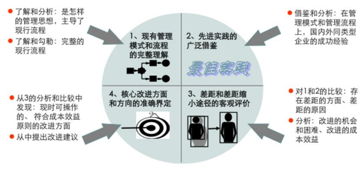 3、運用價值鏈分析法、職責細分法、對標參照法等,搭建流程體系框架;