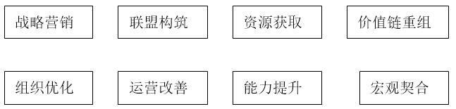 (3)資源獲?。菏欠裼欣讷@取有利戰(zhàn)略資源進(jìn)行資本運(yùn)作,強(qiáng)化資本對(duì)于戰(zhàn)略的推動(dòng)作用,通過(guò)公共關(guān)系管理,構(gòu)造適宜戰(zhàn)略執(zhí)行的外部環(huán)境。