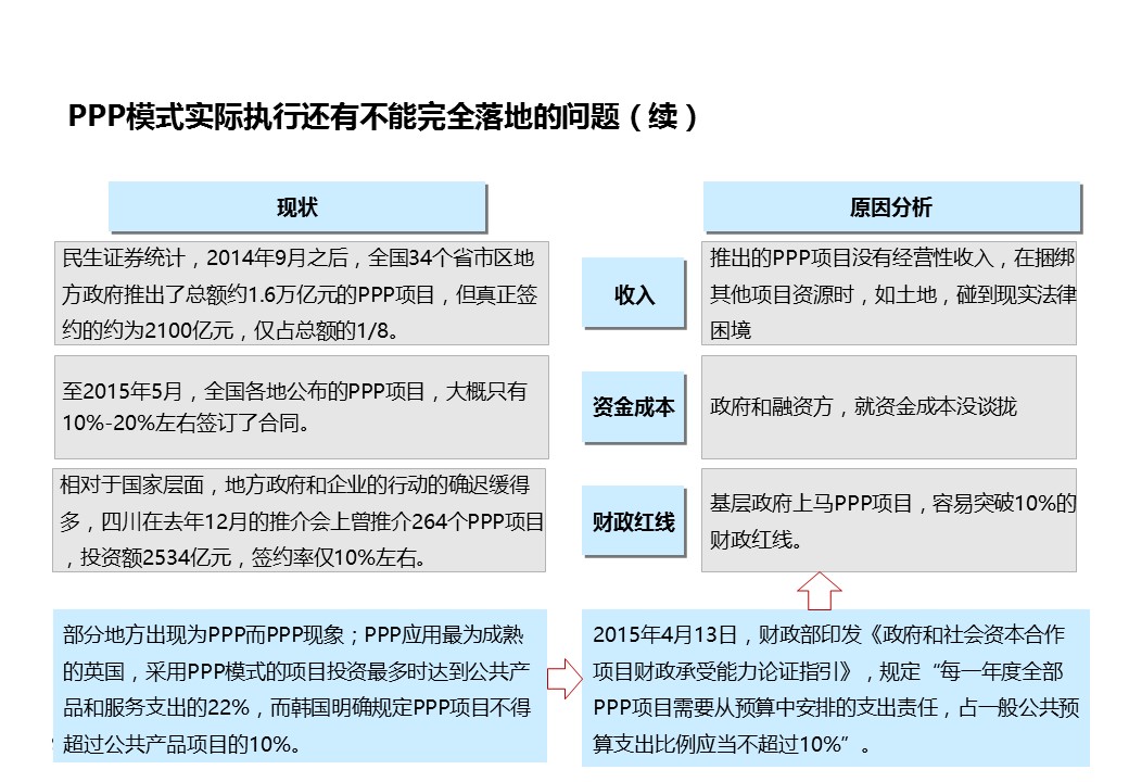七、PPP模式實際執(zhí)行還有不能完全落地的問題
