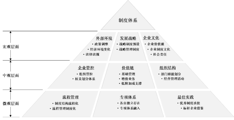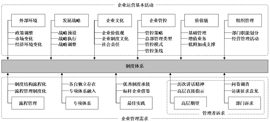 并從企業(yè)運(yùn)營基本活動和企業(yè)管理需求兩方面進(jìn)行制度體系搭建:
