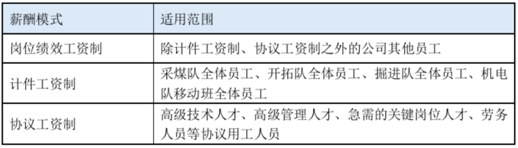 公司的薪酬模式分為三類:崗位績(jī)效工資制、計(jì)件工資制、協(xié)議工資制,各類薪酬模式的適用范圍如下: