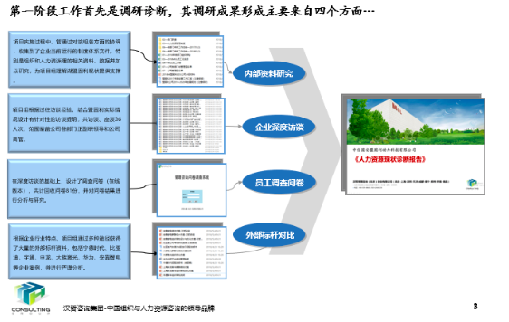 客戶在行業(yè)內(nèi)深耕10多年,伴隨著近幾年行業(yè)快速發(fā)展,公司人員規(guī)??焖贁U張,給人力資源管理帶來諸多挑戰(zhàn)。如,戰(zhàn)略目標(biāo)不清晰,中高層管理人員工作缺乏努力方向;部門間職責(zé)不清晰,部門墻嚴重,組織協(xié)調(diào)困難;員工激勵機制需要優(yōu)化;人才不能滿足公司長期發(fā)展需要,尤其是研發(fā)技術(shù)人才;工作氛圍還呈現(xiàn)出原國有企業(yè)的特征,員工職業(yè)素養(yǎng)不適應(yīng)當(dāng)今發(fā)展,進取心不足等??蛻羝谕ㄟ^對戰(zhàn)略進行澄清,并以此為基礎(chǔ),開展戰(zhàn)略性人才規(guī)劃,構(gòu)建戰(zhàn)略性組織,設(shè)計戰(zhàn)略性薪酬激勵機制,開展員工職業(yè)發(fā)展通道建設(shè)和職業(yè)化培養(yǎng)工作。