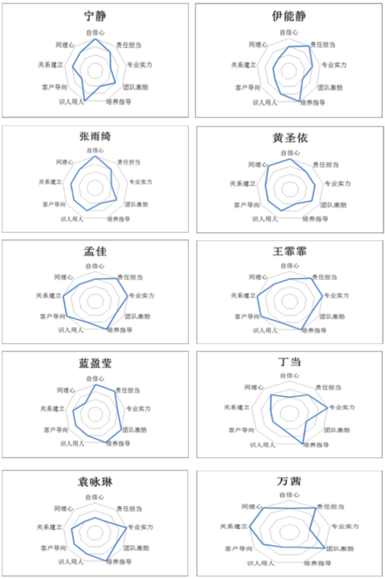 根據(jù)各個要素的定義及分級標(biāo)準(zhǔn)描述,筆者應(yīng)用漢哲咨詢的“人才測評系統(tǒng)”,對節(jié)目中的“小姐姐們”開展領(lǐng)導(dǎo)力測評工作。