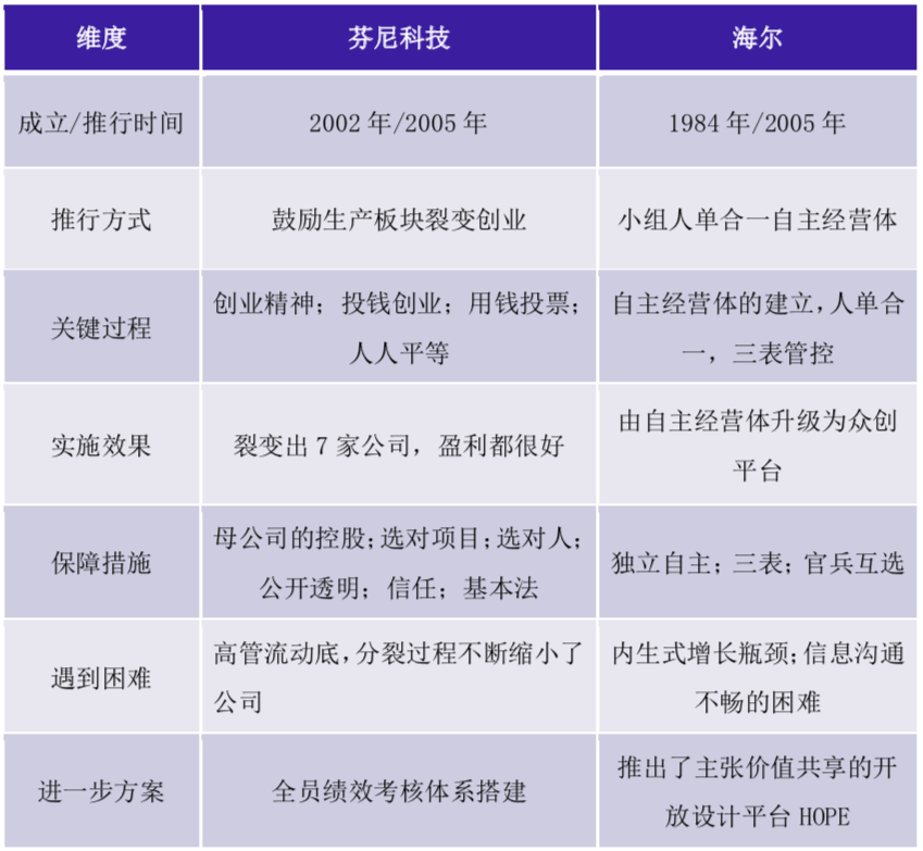 這些原因?qū)е伦谝汩_始把內(nèi)部創(chuàng)業(yè)模式,由真正的獨立核算公司變?yōu)閮?nèi)部獨立核算的事業(yè)部。運作模式跟之前并無區(qū)別,唯一的不同在于可能每年要拿出一定的利潤,像管理費一樣上交給芬尼克茲。不過,對于生產(chǎn)制造等關(guān)鍵環(huán)節(jié)還是由總公司統(tǒng)一管理,以保證總公司的核心資源控制與整體競爭力。
