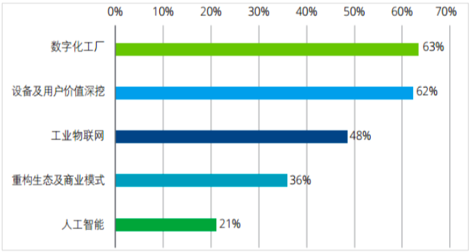 當前,中國工業(yè)企業(yè)智能制造五大部署重點依次為:數(shù)字化工廠、設(shè)備及用戶價值深挖、工業(yè)物聯(lián)網(wǎng)、重構(gòu)商業(yè)模式以及人工智能。