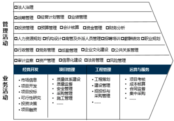 依據(jù)價(jià)值鏈衍生出的組織職能主要有:戰(zhàn)略管理、財(cái)務(wù)管理、人力資源管理、行政后勤管理、黨群工團(tuán)、企業(yè)文化管理、安全管理、監(jiān)察審計(jì)、法務(wù)管理、信息化建設(shè)、風(fēng)險(xiǎn)管理、招投標(biāo)管理、采購(gòu)管理、工程管理、技術(shù)管理等。依據(jù)職能模塊的劃分來(lái)明確部門的設(shè)置和部門承接的職能,再進(jìn)行細(xì)化描述形成部門的職責(zé)。