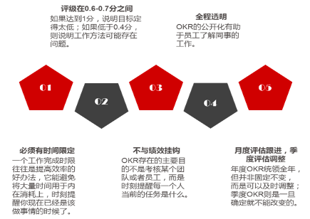 2)OKR實(shí)施的五個關(guān)鍵點(diǎn):