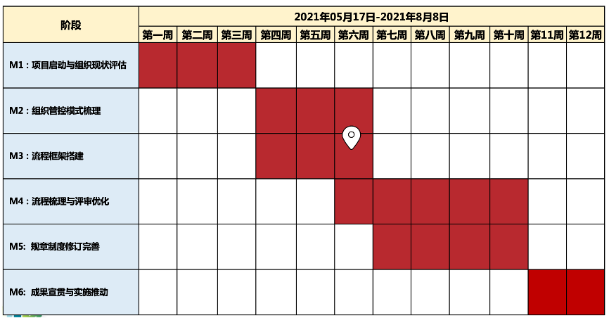 基于上述問題,項目需要完成的包括:(1)梳理組織及崗位職責;(2)搭建流程體系;(3)搭建制度體系;(4)完善內(nèi)控體系。