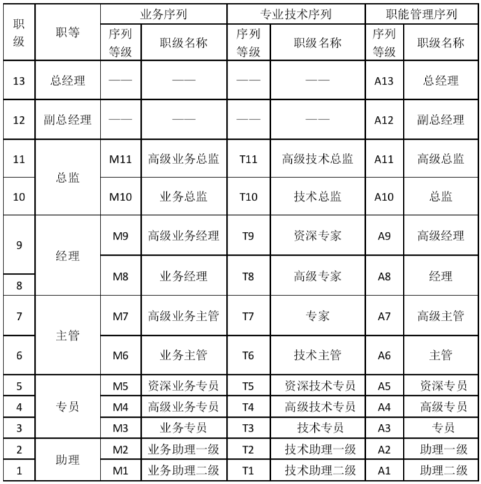 根據(jù)公司管理需要,結(jié)合公司現(xiàn)階段發(fā)展特點(diǎn)、行業(yè)特點(diǎn),以及未來人力資源管理進(jìn)一步要求,規(guī)劃職級(jí)體系和晉升通道,并明確職級(jí)評(píng)定、調(diào)整規(guī)則,為員工提供成長(zhǎng)空間和職業(yè)發(fā)展指導(dǎo)。