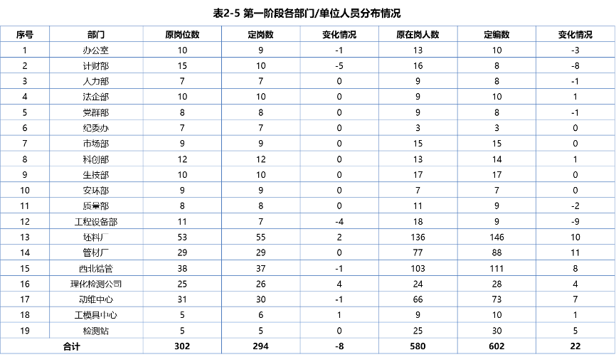 (1)根據(jù)公司戰(zhàn)略規(guī)劃,結(jié)合十四五末公司生產(chǎn)經(jīng)營(yíng)目標(biāo),充分考慮勞產(chǎn)率、管理創(chuàng)新、技術(shù)進(jìn)步、智能制造等內(nèi)外部因素,對(duì)標(biāo)行業(yè)先進(jìn),確定公司宏觀定編方案,實(shí)現(xiàn)總體編制結(jié)構(gòu)合理、人工效率與效益最大化;