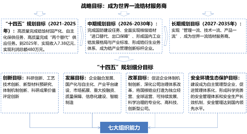根據(jù)“成為世界一流鋯材服務(wù)商”的戰(zhàn)略目標(biāo),以及“十四五”規(guī)劃總體及細(xì)分目標(biāo),識(shí)別支撐各項(xiàng)目標(biāo)實(shí)現(xiàn)的“七大組織能力”。