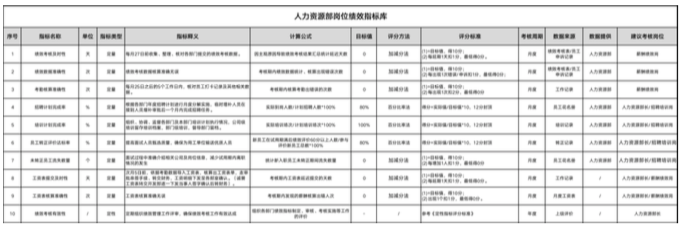 如下指標(biāo)為人力資源部績效指標(biāo)設(shè)計部門內(nèi)容,讀者可進行一定的參考。