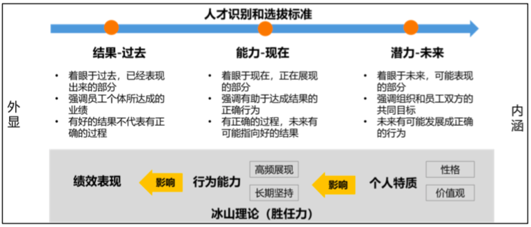 越來(lái)越多的企業(yè),不再僅僅依據(jù)過(guò)去的表現(xiàn)-”績(jī)效“這個(gè)單一維度來(lái)評(píng)估和選拔人才,而更加關(guān)注他們正在展現(xiàn)出來(lái)的、以及未來(lái)可能會(huì)表現(xiàn)的部分,對(duì)人才的評(píng)估更加全面。在人才盤點(diǎn)中,正是以發(fā)展的視角,從“績(jī)效結(jié)果、能力、潛力”多個(gè)維度去識(shí)別和挖掘人才,分別對(duì)應(yīng)著人才成長(zhǎng)時(shí)間軸上的過(guò)去、現(xiàn)在、未來(lái)。