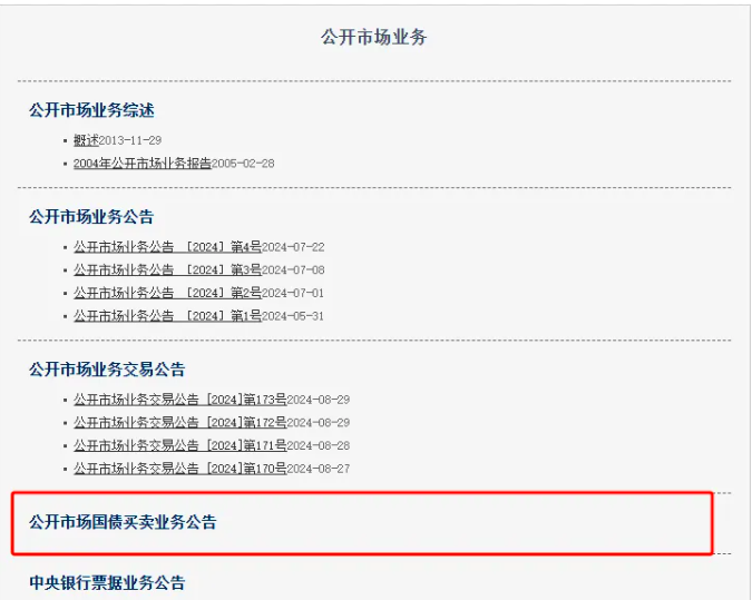 8月28日,中國人民銀行官網(wǎng)“公開市場業(yè)務(wù)”專題頁面上線“公開市場國債買賣業(yè)務(wù)公告”欄目。此次在官網(wǎng)欄目更新,顯示央行已為公開市場國債買賣業(yè)務(wù)做好準(zhǔn)備,再次釋放其將在公開市場開展國債買賣操作的信號。