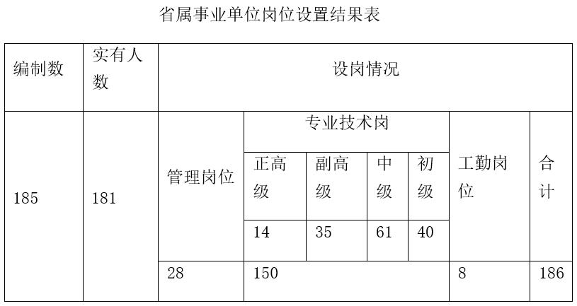 藥監(jiān)系統(tǒng)的事業(yè)單位崗位設(shè)置工作,歷時(shí)半年,全部完成崗位設(shè)置和審批工作,主要結(jié)果如下:96個事業(yè)單位中,除省屬信息培訓(xùn)中心外,全部確認(rèn)為以專業(yè)技術(shù)人員為主體,管理崗位和工勤技能崗位為輔。全系統(tǒng)共設(shè)崗1252個,其中管理崗位89個,專業(yè)技術(shù)崗位1048個,工勤技能崗位115個。省、市、縣三級藥監(jiān)機(jī)構(gòu)各類崗位具體分布情況見下表: