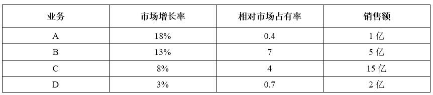 (4)D業(yè)務線:屬于典型的“狗類業(yè)務”,傳統(tǒng)產(chǎn)品,已經(jīng)不適應主流市場的需求,僅有少量老年消費者堅持使用,產(chǎn)品價格低,銷量少,建議停止生產(chǎn),將資源投入到A、B、C業(yè)務上去。